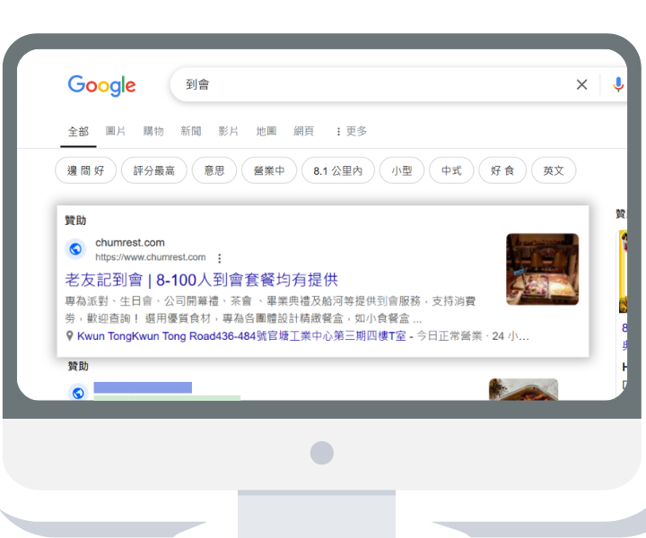 通过我们的搜索引擎推广服务,成功为 老友记到会 打造精准关键词广告,登顶搜索引擎排名,显著提升品牌可见度。在 Day Catch HK,我们的网络广告专家提供一站式服务,管理您的点击付费广告、Google 展示广告网络及广告预算。作为 Google 合作伙伴之一,我们拥有最新行业资讯及专业团队,为您提供高质量搜索引擎营销服务,最大化推广您的产品或服务,助您领先竞争对手。我们深入理解您的目标,制定出价策略,综合广告形式、预算和目标受众,为您的品牌、网站和业务提供最优选择。